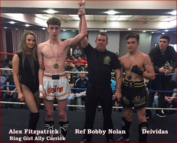 The show got underway and Produced some quality fights and some great stoppages also. Alex Fitzpatrick was the fighter of the night and at the tender age of 14 years, he gave a master class in International Rules (Low Kick) today. Some nasty low kicks & some fantastic head kicks coupled with good boxing skills and great composure - this kid has a bright future.