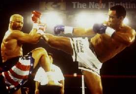 IKF In probably one of the greatest bouts of his career, Rick "The Jet" Roufus quieted all his critics in May of 1999 when he defeated Australia's Stan Longinidis by TKO to win the IKF International Rules Heavyweight WORLD Title. Being new to the leg kick game, Roufus was the underdog to many critics against the experienced leg kick Champion Longinidis. In the end, Longinidis couldn't answer the bell for the 10th round due to a broken foot. The broken foot though didn't show the true damage Roufus had put on him during the 9 rounds fought. These pictures on this page reflect some of Roufus' shining moments. At the time of the stop, Roufus was ahead on all 3 judges cards, 89-81, 88-81 and 86-83. Longinidis was competitive in rounds 1-4 where the scores were 40-36 Longinidis, 39-38 Roufus and the final judge having it 38-38 even. However, in round 5, Roufus landed a head kick (Shown several times below) which dropped Longinidis hard. After it, Longinidis was never the same and never won another round on any judges cards. | |