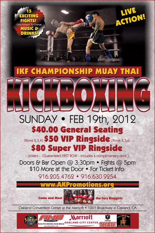 Johnny Davis' AK Promotions, (Based out of Rocklin, California, USA) a company specializing in events that promote fight entertainment in northern California announced that it would be hosting its second edition of IKF Muay Thai Kickboxing shows at the Oakland Convention Center in Oakland California, USA!