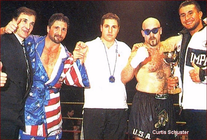 • With a packed house of approximately 4,200 kickboxing fans at the Mirage Resort and Casino in Las Vegas Nevada, USA, The first ever K-1 USA was everything the paying audience wanted. Well...that is... until the final championship tournament bout. When the time came to put the 2 undefeated fighters together, Curt Schuster and Rick Roufus, Schuster honorably bowed out due to a knee injury and Roufus won the first ever K-1 USA title by "Walkover", without throwing 1 punch or 1 kick.