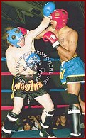 The fighters name is Steven Simmons (Left). Simmons (200, 5'7", 19, International Rules Heavyweight Division) is a walkover registration out of the Central Mountain Division. His hometown is Greenley Colorado, USA. We first met Simmons back in August of 2002 when he travelled all the way to Northern California to fight at the Win River Casino in Redding California. In the bout Simmons fought a fighter by the name of (Mohamad) Ali Baaloucch of Roseville, California, USA trained by Nasser Niavaroni. It was the first fight for both fighters. Baaloucch defeated Simmons by unanimous decision 30-27 on all 3 judges cards.