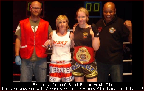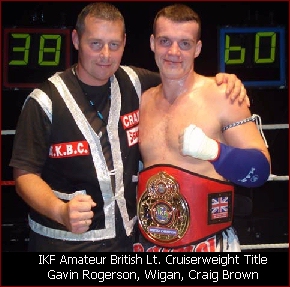IKF ENGLAND: Saturday, 22nd September, 2008 was the date A.K.A. England in partnership with Warrington Kickboxing Studio ( www.warrington-kickboxing.com ) staged the fifth event of the 2008 season. The venue for this competition was THE PARR HALL, in Warrington, Cheshire. This IKF sanctioned amateur kickboxing competition was conducted under the IKF Kickboxing format known as OSR ( Open Scoring Rules ). This is based up to Olympic Style Rules as seen in Olympic Amateur Boxing, and features 'Open Scoring' using electronic score boards. All the striking techniques and methods are allowed as is used in the professional Kickboxing division from Japan, known as K-1 , which allows Kicks, Punches and Knees - with restricted clinch holding. This combination makes for very fast and exciting contests, yet under very safe conditions for the participating athletes. The OSR rules are proving very popular now - with even more schools in attendance at this event, as more athletes look to compete in a safe competition format. In the week leading up to the event, which had a maximum capacity for 30 bouts ( 60 athletes ) over 110 entries had been submitted by people wishing to compete on the event! Of particular attraction to the OSR format is the 'Outclass' rule, that ensures an athlete is protected form taking too much punishment. This comes into effect through the 'Open Scoring' on the electronic scoreboards, and should an athlete be losing to an opponent by 20 points or more a contest is stopped due to 'Outclass'. The top of the billing were no fewer than four Championship title defences! Something rarely seen in the Professional ranks, especially as two of them were in fact the second defences by the champions! This competition was organized thanks to the support of the official 2008 sponsor of the A.K.A. England Circuit, one of the worlds leading martial arts equipment suppliers M.A.R. International (www.qualitymartialarts.com). Everyone that was involved in this event would like to thank Mr. Ali, proprietor of M.A.R. International for his support, as well as Steve Fossum, the president of the International Kickboxing Federation. Here are the nights results: IKF