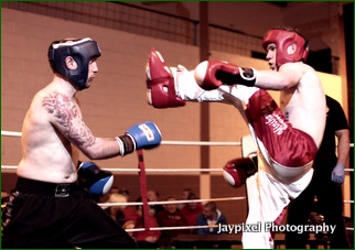 Daniel Hodges of Rocklin, CA and Gaston Balanos of Dublin, CA will be fighting for the IKF CA Welterweight title but are not the main event on the upcoming show. However, if you witnessed their last fight that ended in a draw, action packed with toe to toe action, you would know that this is not a fight you want to just hear about later, but instead, you will want to be on the front row of this brawl for it all! Although only the semi main for this event, it will be a fight with main event caliber written all over it! It's evident in Balanos and Hodges' demeanor that neither of these guys are afraid of each other but both have high regards for the other's ability which will make for some awesome fireworks in the ring! Left: Hodges lands a kick on Balanos' chest Gaston gave a call to AK Promotions' office the other day...after some prodding from Hodges camp to make it clear "That Daniel better be ready for 5 hard rounds and be ready for a good butt kicking!", he made it clear of his intentions to take the title back to Dublin. However, on the other hand, Hodges has his own plans to bring the title home himself and is not shy about his claim for the IKF Gold. He's been training hard and inviting many of his friends, family and military associates to witness the battle. Hodges, like Balanos, makes it clear to everyone that this will be a great fight and one of these warriors will truly go down for the count if he gets careless, and the look in Hodges eyes is clear that he means what he says. Balanos is a skilled Muay Thai technician while Hodges is more of a brawler who is very strong, hard hitting and improving as time goes by. The results could go either way...but one thing for sure, the fans will get their money's worth out of this fight alone...get ready for a war! |