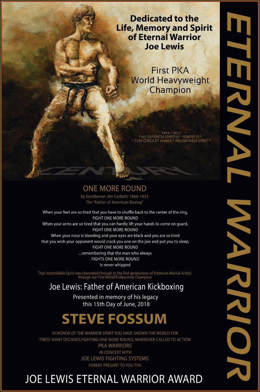 The Joe Lewis ETERNAL WARRIOR Award. CLICK HERE.