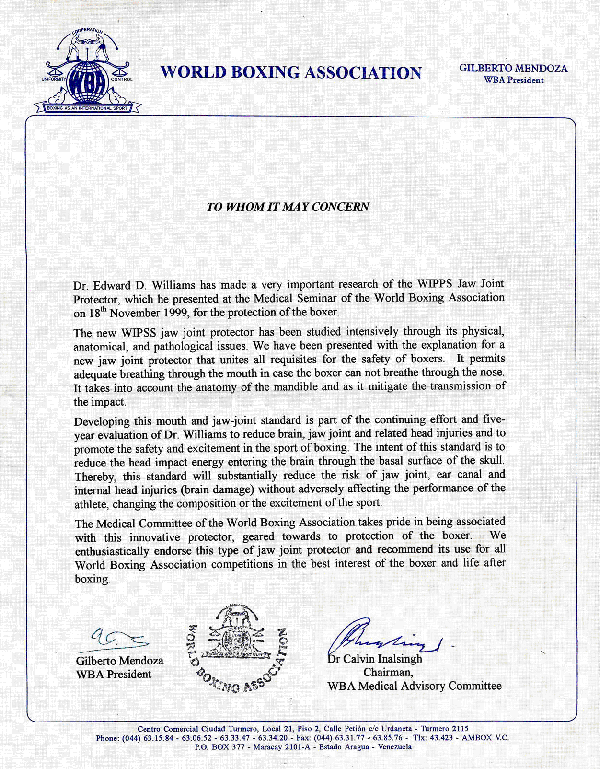 is proud to release this certificate of endorsement of the Jaw-Joint Protector